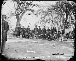 Following the First Battle of Bull Run in July 1861, Loring joined the United States Volunteers and received an appointment to the staff of General Ambrose Burnside at the rank of first lieutenant.[1]: 4 In February 1862, Loring was promoted to captain and was assistant quartermaster on Burnside's staff.[1]: 4 In July 1862, Burnside's command was reorganized as the Ninth Army Corps, with Loring as one of seven staff officers.[1]: 4 Loring remained with the Ninth through the end of the war.[1]: 4 He held the rank of lieutenant colonel by the Battle of the Crater on July 30, 1864, and on August 1 received brevets to colonel and brigadier general, highlighting his "gallant and meritorious services" at the Siege of Knoxville, Battle of the Wilderness, Battle of Spotsylvania, and Battle of Bethesda Church.[1]: 5 After the Surrender of Lee in April 1865, Loring received his third and final brevet, to major general in July,[4] highlighting his overall services during the war; he left the army the following month.[1]: 5–6