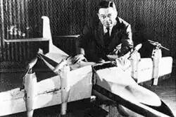 Zimmerman worked at Langley Memorial Aeronautical Laboratory in the 1930s on a variety of research topics, including loads,[2][3][4] airfoils,[5][6] and aircraft stability and design.[7][8] During this time, he was also thinking about much more novel aspects of flight, especially how stability might be maintained. He theorized that the natural balancing reflexes of a person could be adequate to control very small flight vehicles, a concept he called "kinesthetic control". He was also interested in aspects that could lead to Vertical/Short Takeoff and Landing aircraft.