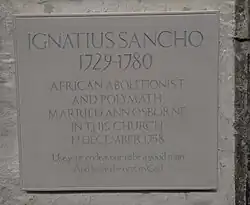 - ^ "Ignatius Sancho". Westminster Abbey. Retrieved 3 January 2024.