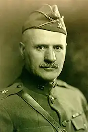 From 1909 to 1917, Martin served as the Adjutant General of Kansas and commanded the 1st Infantry Brigade of the Kansas National Guard as a brigadier general.[4][3] On August 5, 1917, some time after the United States' entry into World War I, Martin was given command of the 70th Infantry Brigade, 35th Infantry Division,[3] and departed for France with the rest of the division in May 1918, arriving in Liverpool on May 8, 1918.[5] In May 1918, Martin served as an observer with the British Army while the 35th Division was assigned to their reserve lines during the Spring Offensive of 1918.[2][6] From July to September 1918, Martin and the 70th Brigade manned a quiet portion of the trenches,[7] before participating in the Saint-Mihiel offensive,[2][1] although not directly as the 35th Division did not see action until September 26, 1918.[5]