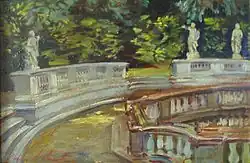 Charles Merrill Mount (1928–1995) was an American artist. Born in Brooklyn, New York in 1928 as Sherman Merrill Suchow, he later changed his name and studied at the Art Students League of New York. He won a Guggenheim Fellowship in 1956 and travelled to Europe where he worked in Italy, France, Britain and Ireland. He returned to the United States in 1969, and worked in New York and Washington, D.C. He specialized in portraits and also produced landscapes and streetscapes in oil and watercolor as well as charcoal drawings. He was interested in art history and published biographies of John Singer Sargent (1955), Gilbert Stuart (1964) and Claude Monet (1966). His career and personal life were marred by untreated bipolar disorder and a controversial later life, including a prison sentence for theft of rare documents. He died in 1995 in Washington, D.C. He is survived by five children from two marriages.