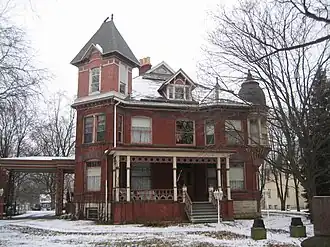 The Charles O. Boynton House is located in the DeKalb County, Illinois, city of Sycamore. The home is part of the Sycamore Historic District which was designated and listed on the National Register of Historic Places in May 1978. The Queen Anne style mansion sits on a stretch of Sycamore's Main Street that is dotted with other significant Historic District structures including, the Townsend House and the Townsend Garage. The Boynton House was designed by the same architect who designed the Ellwood House in nearby DeKalb and the David Syme House, another house in the Sycamore Historic District.[2]