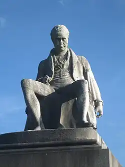 Tennant died at his home at Abercromby Place[11] in Glasgow on 1 October 1838, aged 70. He is buried in Glasgow Necropolis where his monument stands on the upper plateau. The unusual statue thereon is in the form of a very casually (arguably slumped) seated figure. The sculpture is by Patrick Park (1811–1855) and appears to be based on Francis Chantrey's statue of James Watt in the nearby Hunterian Museum.