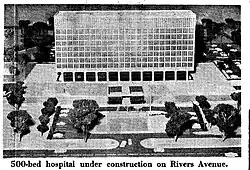 A groundbreaking ceremony was held 14 February 1970, officially marking the beginning of the new Charleston Naval Hospital, a modern 500-bed structure that would replace the hospital facilities contained in the outmoded quarters on the Charleston Naval Base.