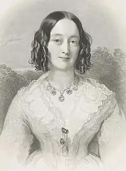 The Duchess of Buccleuch and Queen Victoria were lifelong friends,[3][6] with the monarch describing the Duchess as "an agreeable, sensible, clever little person."[7] In 1842, at Buckingham Palace, during Queen Victoria's preparations to visit Scotland, the Duchess helped advise her on the country.[5] The Duke and Duchess helped entertain the Queen and Prince Albert when they arrived at Dalkeith.[2] The historian Alex Tyrrell writes that the Duchess helped "consolidate Conservative influence in the royal household and counteract memories of the Bedchamber Crisis."[5] The Queen stood as godmother for the Duchess' eldest daughter Victoria Alexandrine, who was christened at Buckingham Palace in April 1845. The Montagu-Douglas-Scotts were patrons of the artist Robert Thorburn, and commissioned him to paint several portraits of the Duchess, including a double portrait of her and Lady Victoria; this was given to Queen Victoria in 1847.[7]