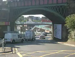 The A2 road at Luton Arches. The New Road runs underneath the Luton Arches Footbridge.