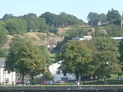 Looking from the River Medway at Sun Pier along the Great Barrier Ditch, to the Gun Platforms at Fort Amherst