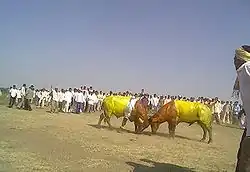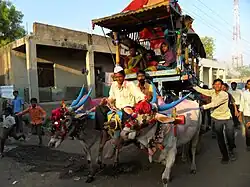 During the Diwali festival, villagers have a custom of gathering on the river banks to watch Helyachi Takkar (male bulls' head fights). The farmers raise male buffaloes to enter these fights.