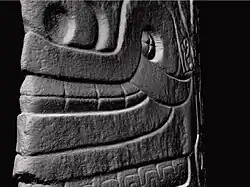 Chavín stela depicting a brindle face. National Museum Chavín de Huántar. -