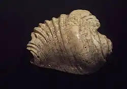 Music also played a role in Chavín ritual. Strombus shell trumpets were found at Chavín sites.[30] Trumpets were stored underground and it is believed that they were used by ritual practitioners, who would use them and play in procession through the underground galleries.[14]