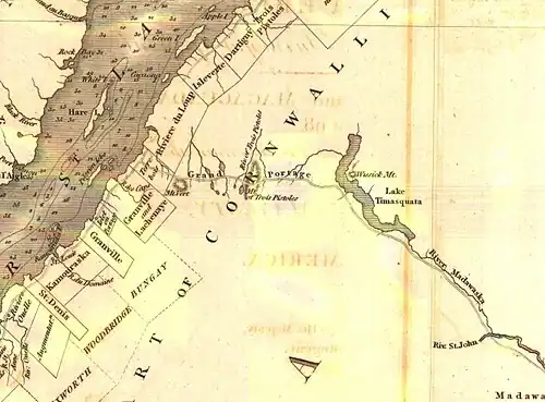 The shortest land route between Acadia and New France was through the region of Temiscouata, where, in 1746, the French administration built a road that allowed access to Lake Temiscouata, from which the Atlantic Ocean could be reached through a network of rivers.