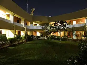 The on-campus hostel was opened in January 2007. All students are expected to stay in the hostel. Security guards are posted in the campus round the clock, including women security guards for the girls wing on all floors. Washing machines are installed in the hostel which is managed by the students. A vehicle is parked in the campus at night for emergencies. Wi-fi facility is available in the campus.[23]