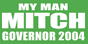 While campaigning in the general election, Daniels visited all 92 counties at least three times. He traveled in a donated white RV nicknamed "RV-1" and covered with signatures of supporters and his campaign slogan, "My Man Mitch".[65] "My Man Mitch" was a reference to a phrase once used by President George W. Bush to refer to Daniels. Bush campaigned with Daniels on two occasions, as Daniels hoped that Bush's popularity would help him secure a win. In his many public stops, he frequently used the phrase "every garden needs weeding every sixteen years or so"; it had been 16 years since Indiana had had a Republican governor.[64] His opponent in the general election was the incumbent, Joe Kernan, who had succeeded to the office upon the death of Frank O'Bannon. Campaign ads by Kernan and the Democratic Party attempted to tie Daniels to number of issues—his arrest for marijuana use; a stock sale leading to speculations of insider trading; and, because of his role at Eli Lilly, the high cost of prescription drugs.[65] The 2004 election was the costliest in Indiana history, up until that time, with the candidates spending a combined US$23 million.[64] Daniels won the election, garnering about 53% of the vote compared to Kernan's 45%.[64] Kernan was the first incumbent governor to lose an election in Indiana since 1892.[64]