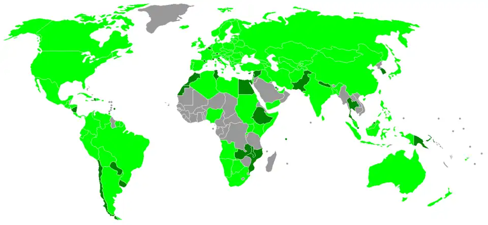 An attempt was made in 1924 to include chess in the Olympic Games. However, because it was very difficult to distinguish between amateur and professional chess players, the event was called off.[12] While the 1924 Summer Olympics was taking place in Paris, the 1st unofficial Chess Olympiad took place separately from the Olympics, but also in Paris. The Fédération Internationale des Échecs (FIDE) was formed on the closing day of the first unofficial Chess Olympiad.[13] FIDE organized the first official Chess Olympiad in 1927 in which there were 16 participating countries.[12] By the 29th Chess Olympiad in 1990, there were 127 member countries.[11] The Chess Olympiads were held at irregular intervals by FIDE until 1950; since then, they have been held regularly every two years.[12]