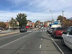 At this point, Chester Pike splits to the east and US 13 continues north along four-lane undivided MacDade Boulevard, crossing Darby Creek into the borough of Darby. The route passes to the west of the bus terminal at SEPTA's Darby Transportation Center and curves northeast at the Main Street intersection into urban neighborhoods, narrowing to two lanes. The road passes to the south of Holy Cross Cemetery, where it enters the borough of Yeadon, before it passes through more residential areas. US 13 turns north-northwest onto Church Lane and runs through more residential neighborhoods. The route comes to a bridge over SEPTA's Media/Wawa Line west of Fernwood–Yeadon station and crosses into Upper Darby Township, where it comes to an intersection with Baltimore Pike. Here, US 13 turns east onto Baltimore Pike and runs between Fernwood Cemetery to the north and urban residential and commercial development to the south. Farther east, the road passes through a corner of Yeadon.[2][3]