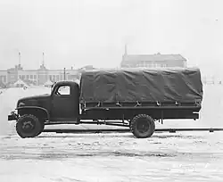 During World War II, the US military purchased a total of 167,373 four by four 11⁄2-ton trucks, and Chevrolet supplied the great majority of them.[5][6] According to the 1946 revision of the U.S. military's Summary Report of Acceptances, Tank-Automotive Materiel, Dodge (Fargo) – the initial standard supplier of U.S. 1+1⁄2-ton 4x4 trucks – contributed 6,762 VF model, G-621 series trucks in 1940;[7] and Ford (Marmon-Herrington) and Diamond T supplied another 6,271 and 136 units respectively,[8] leaving 154,204 Chevrolet trucks.[1]