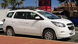 The Chevrolet Spin is a mini MPV produced by General Motors under the Chevrolet marque. Developed by GM do Brasil, the vehicle replaced the Meriva and Zafira in South America with an option of two-row and three-row seating. It is produced in Brazil since 2012 and has been exported throughout the South American region. Between 2013 and 2015, GM Indonesia assembled the vehicle for the Southeast Asian market at its Bekasi plant.[4]
