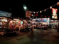 Chiang Mai Night Bazaar or just Night Bazaar (Thai: ไนท์บาซาร์, Nai Basa) is directly east of the city moat, between it and the Ping River, on Chang Khlan Road, between Tha Phae and Sridonchai Roads. It is known for its handicrafts and portrait paintings. There are also jewelry, toys, clothing, and technology such as CDs and DVDs. The market is one of the most popular tourist attractions in Chiang Mai.[1][2] At first, the market was owned by Chinese merchants, but it grew in size as more commercial buildings were built, and it was no longer owned by a single group of people. Instead, there are many owners, and most of them are Thai.
