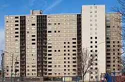 | Prairie Courts | South Commons (South Side) | 1950–52 | Consisted of 5 7- and 14-story buildings, 230 units made up of row houses, totaling 877 units; demolished. Replaced with new development which was constructed between 2000–2002. |