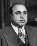 Torrio's organization was made up predominately of ethnic Italians but had a large contingent of members from other immigrant backgrounds. Torrio's gang also differed from the other Chicago gangs by recruiting from New York's underworld, regularly welcoming that city's ambitious criminals into his organization's ranks.[15] Alphonse "Scarface Al" Capone had left New York for Chicago in 1919, likely under orders from mob boss Frankie Yale to leave town to avoid retaliation for previous violence they had committed in New York. Capone began in Chicago as a doorman at the Four Deuces club. By 1924, Capone's business acumen and shrewd intelligence had gained him a place as Torrio's right-hand man. Many rivals saw Capone as responsible for the proliferation of brothels in the city.[16][17][18][19]