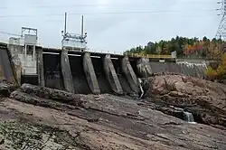 The Chicoutimi River is a watercourse of eastern Quebec, Canada. A tributary of the Saguenay River, which it meets in the city of Saguenay, it is the 26.2-kilometre-long (16.3 mi) main outlet of Kenogami Lake, which rises from a watershed of 3,390 square kilometres (1,310 sq mi) in the Laurentides Wildlife Reserve. Entirely located in the Chicoutimi borough of Saguenay, it is the most urbanized and dammed river in Saguenay–Lac-Saint-Jean.[1]