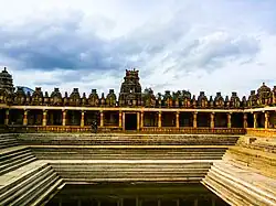 Bhoga Nandeeshwara Temple (also spelt "Bhoga Nandishwara" or "Bhoga Nandishvara") is a Hindu temple located in Nandi village, at the base of Nandi Hills (or Nandidurga) in the Chikkaballapur district of Karnataka state, India. It is dedicated to the Hindu god Shiva.