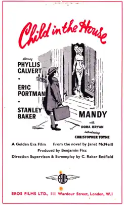 Child in the House is a 1956 British drama film directed and written by Cy Endfield and starring Phyllis Calvert, Eric Portman and Stanley Baker.[1] It is based on the 1955 novel A Child in the House by Janet McNeill. A girl struggles to cope with her uncaring relatives.