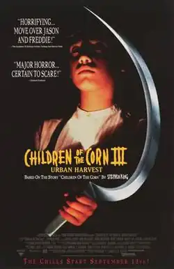 Children of the Corn III: Urban Harvest is a 1995 American supernatural slasher film directed by James D. R. Hickox, and starring Daniel Cerny, Jim Metzler, Nancy Grahn, and Mari Morrow. It is the third film in the Children of the Corn film series, and focuses on two mysterious brothers who are adopted from rural Nebraska and brought to Chicago as a chain of deadly occurrences surrounding the family follows, involving a cult in which the younger brother is a follower.[1] Children of the Corn III marked the film debuts of Nicholas Brendon, Ivana Miličević, and Charlize Theron. Ed Grady reprises his role as Dr. Richard Appleby from the first sequel via a flashback sequence to Children of the Corn II: The Final Sacrifice.