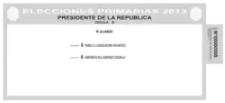 Both candidates were officially registered on 1 May 2013.[1] Affiliates from both Alianza parties (RN and UDI) plus independent electors were allowed to vote.