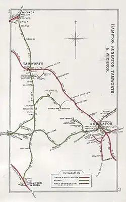 | Bedworth Line and station open | London and North Western Railway Coventry–Nuneaton line | Nuneaton Line and station open | ||