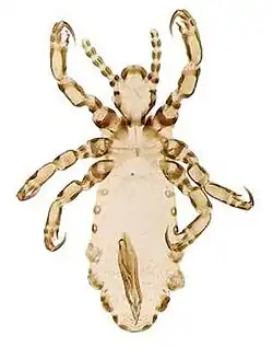 Chimpanzees and humans share only 50% of their parasite and microbe species. This is due to the differences in environmental and dietary adaptations; human internal parasite species overlap more with omnivorous, savanna-dwelling baboons. The chimpanzee is host to the louse species Pediculus schaeffi, a close relative of P. humanus, which infests human head and body hair. By contrast, the human pubic louse Pthirus pubis is closely related to Pthirus gorillae, which infests gorillas.[83] A 2017 study of gastrointestinal parasites of wild chimpanzees in degraded forest in Uganda found nine species of protozoa, five nematodes, one cestode, and one trematode. The most prevalent species was the protozoan Troglodytella abrassarti.[84]