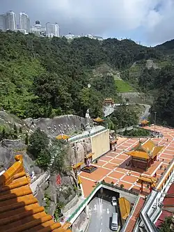 The Chin Swee Caves Temple (Chinese: 清水岩庙; Pinyin: Qīngshuǐ Yán Miào) is a Chinese temple in Genting Highlands, Pahang, Malaysia. It is situated a scenic site in the Genting Highlands, on a 28-acre plot of rocky forested land donated by Genting Group founder, the late Lim Goh Tong. Located 4,600 feet above sea level, the temple is about 5–10 minutes' drive down from the peak of the mountain.[1][2] Within the temple is a statue of Master Qingshui, a Buddhist monk who has long been worshipped as a Deity in Fujian Province, China for his miraculous abilities to summon rain and subdue evil spirits.[2] The temple attracts many local and foreign devotees from Singapore, Taiwan, Vietnam, China, Thailand and Indonesia.[2]