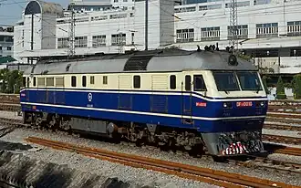 The DF11 (Chinese: 东风11) is a semi-high-speed diesel-electric locomotive used on the People's Republic of China's national railway system. This locomotive was built by CRRC Qishuyan.