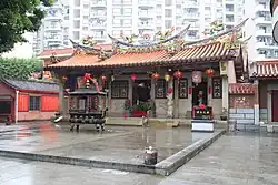 Contemporary academic study of traditional cults and the creation of a government agency that gave legal status to this religion[17] have created proposals to formalise names and deal more clearly with folk religious sects and help conceptualise research and administration.[18] Terms that have been proposed include 'Chinese native religion' (民俗宗教; mínsú zōngjiào), 'Chinese ethnic religion' (民族宗教; mínzú zōngjiào),[19] or 'Chinese religion' (中華教; zhōnghuájiào) viewed as comparable to the usage of the term "Hinduism" for Indian religion.[20] In Malaysia, reports the scholar Tan Chee-Beng, Chinese do not have a definite term for their traditional religion, which is not surprising because "the religion is diffused into various aspects of Chinese culture". They refer to their religion as 'Buddha worship' (拜佛; bàifó) or 'spirit worship' (拜神; bàishén), which prompted Alan J. A. Elliott to suggest the term 神教 (shénjiào; 'shenism'). Tan however, comments that is not the way the Chinese refer to their religion and suggests it is logical to use "Chinese Religion".[21] Shenxianism 神仙教 (shénxiān jiào), literally 'religion of deities and immortals',[22] is a term partly inspired by Elliott's "shenism" neologism.[23]