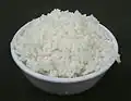 Rice was domesticated in the Yangtze River basin in southern China approximately 9,000 years ago and is a primary staple food for people from rice farming areas in southern China.[41] Steamed rice, usually white rice, is the most commonly eaten form. People in South China also like to use rice to make congee as breakfast.[42] Rice is also used to produce beer and vinegar. Glutinous rice ("sticky rice") is a variety of rice used in special dishes such as lotus leaf rice and glutinous rice balls.