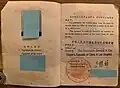 The Form "97-2" ordinary Chinese passport is a machine-readable passport, and issued in February 1997. In "97-2", personal data is on the inside front cover along with a coloured photo printed with inkjet printer, with a protective film covering most of the data page. Details include: