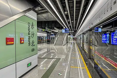 Chisha North station (Chinese: 赤沙北站; pinyin: Chìshā Běi Zhàn; Cantonese Yale: Cěksāa Bāk Jaahm) is a station on Line 12 of the Guangzhou Metro. It is located underground on the southeast side of Line 11's Chisha Depot in Guangzhou's Haizhu District.[1] It opened on 29 June 2025.[2]