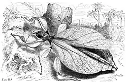 Chitoniscus lobiventris, the lobed leaf insect, is an insect species classified within the order Phasmatodea and the family Phylliidae. Initially documented by Blanchard in 1853, its distinguishing feature lies in its leaf-like appearance, a characteristic adaptation for camouflage within its natural habitat.[1] Like many Chitoniscus species, it is found in the South Pacific. The holotype specimen for this species was a male from Viti, Lebouka collected by Émile Blanchard.[2] In August 1903, a female specimen was collected in Carins by R.C.L Perkins. Males and females were also collected in the Kolombangra of the Solomon Islands in April and October by M.Bigger.[3]