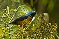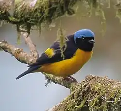 ![]() | Blue-naped chlorophonia | Chlorophonia cyanea | south-eastern Brazil, eastern Paraguay and north-eastern Argentina, the Andes from Bolivia in south to Venezuela in north, the Perijá and Santa Marta Mountains, the Venezuelan Coastal Range, and the Tepuis. |