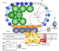 - ^ a b c d Orf GS, Blankenship RE (October 2013). "Chlorosome antenna complexes from green photosynthetic bacteria". Photosynthesis Research. 116 (2–3): 315–31. doi:10.1007/s11120-013-9869-3. PMID 23761131. S2CID 8613450.