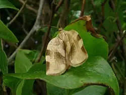 The larva feeds on Malus, Fagus, Betula, Ulmus, Quercus and Rubus species.