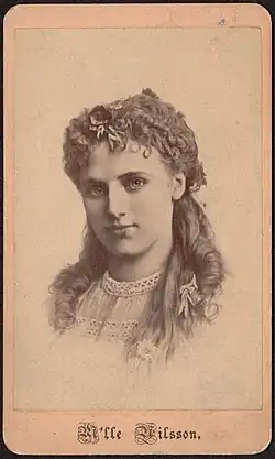 Christina Nilsson, Countess de Casa Miranda, also called Christine Nilsson[1] (20 August 1843 – 22 November 1921)[2] was a Swedish operatic dramatic coloratura soprano. Possessed of a pure and brilliant voice (B3-F6), first three then two and a half octaves trained in the bel canto technique, and noted for her graceful appearance and stage presence,[3][4][5] she enjoyed a twenty-year career as a top-rank international singer before her 1888 retirement.[3] A contemporary of one of the Victorian era's most famous divas, Adelina Patti,[6] the two were often compared by reviewers and audiences, and were sometimes believed to be rivals.[4][7] Nilsson became a member of the Royal Swedish Academy of Music in 1869.