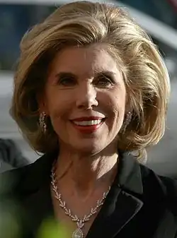 Although recognized for her versatility across genres and performing media, Baranski is particularly known for playing sophisticated and highly educated upper-class women.[25] Consequently, the media began alluding to the resemblance between this repeated on-screen persona and Baranski's real personality.[26][27][28] Caroline Hallemann of Town & Country notes that, "For years, the award-winning actress has been the definition of on-screen sophistication."[29] In 2017, the actress told Zac Posen for Interview Magazine, "What I'm getting at is if your career is not predicated on just your physical beauty, you're able to project a sophistication. You can take sophisticated to your grave. You can be that worldly woman, that woman who looks beautiful dressed up."[30] On the other hand, Baranski humorously addressed these claims during her appearance on The Late Show with Stephen Colbert, "Everybody thinks this is, you know, this sophisticated lady, this New York type, these characters that I play, they think that's me. They should be in a room alone with me when I watch the Buffalo Bills. It is loud."[31]