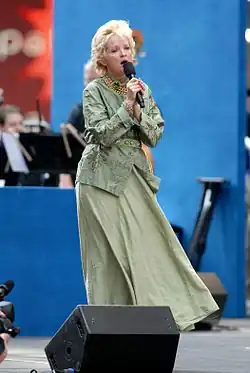 Ebersole appears in concerts and cabaret engagements at venues such as the Cinegrill and Cafe Carlyle. She won the 2010 Nightlife Award for Outstanding Cabaret Vocalist in a Major Engagement for her 2009 Café Carlyle cabaret.[22] In 2009 she performed with Michael Feinstein at his club, Feinstein's at Loews Regency, (New York City) in a cabaret titled "Good Friends".[23] She was one of the performers on the Playbill Cruise in September 2011.[24] In November 2011, she performed for two sold-out nights at Birdland in New York City with jazz violinist Aaron Weinstein and his trio.[25]