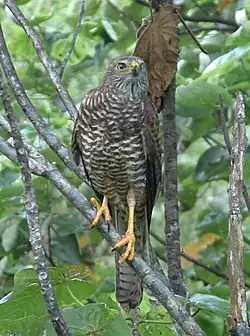 The Christmas Island goshawk has been seen attacking and eating the Christmas Island flying fox. The Nankeen kestrel, which established itself on the island around 1950, and the island's frigatebirds have been observed harassing it.[18] Flying foxes are generally infested with spinturnicid mites, and the mite Meristaspis calcaratus was recorded on the Christmas Island flying fox, though in low density. There is a report of a nonpathogenic coccidia protozoan infection, which is only recorded in 15 other bat species, and an unidentified ascaridid roundworm, possibly the deadly Toxocara pteropidis.[20]