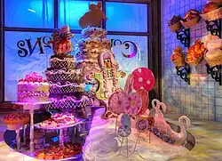 In 2011, Anthony Ausgang designed the Christmas windows for the La Rinascente Department Store in Milan with larger-than-life three-dimensional models of his trademark psychedelic cartoon cats.[8] Bertrand Planes designed Christmas window displays for Le Bon Marché in Paris.[9]