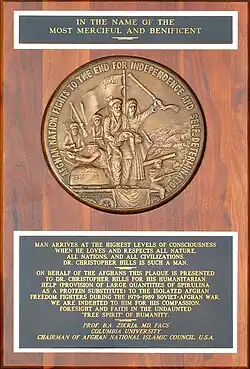 Award presented to Christopher Hills for his humanitarian services during the Soviet–Afghan War