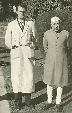 Christopher Hills with Indian Prime Minister Jawaharlal Nehru at Teen Murti Bhavan, New Delhi