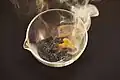 Chromium trioxide (also known as chromium(VI) oxide or chromic anhydride) is an inorganic compound with the formula CrO3. It is the acidic anhydride of chromic acid, and is sometimes marketed under the same name.[6] This compound is a dark-purple solid under anhydrous conditions and bright orange when wet. The substance dissolves in water accompanied by hydrolysis. Millions of kilograms are produced annually, mainly for electroplating.[7] Chromium trioxide is a powerful oxidiser, a mutagen, and a carcinogen.[8]
