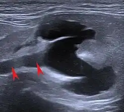 The ultrasound examination allows morphological changes in the kidneys in more detail. In addition to changes in size and shape, renal cysts, localized (focal) organ damage, water sac kidneys and urinary retention as well as tumors can also be visualized. Hardly defined (diffuse) organ changes are accompanied by changes in echogenicity, but can only rarely be assigned to defined diseases.[22] Pulsed Wave Doppler" can also be used to detect circulatory disorders.[23] Calcification (nephrocalcinosis) is also common in chronic kidney disease and can also be detected sonographically.[24]